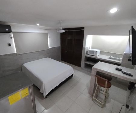 MINISPLITB INVERTER VENTILADADOR, REFRIGERADOR, HORNO DE MICROONDAS, PARRILLA ELÉCTRICA, TELEVISIÓN, CAMA QUEEN SIZE, CONSTA DE UNA RECAMARA Y BAÑO. ZONA TRANQUILA ARBOLADA CON CERCANÍA A TODOS SERVICIOS (PLAZAS, MERCADO, PARQUE, GASOLINERA, BANCOS, ETC.)