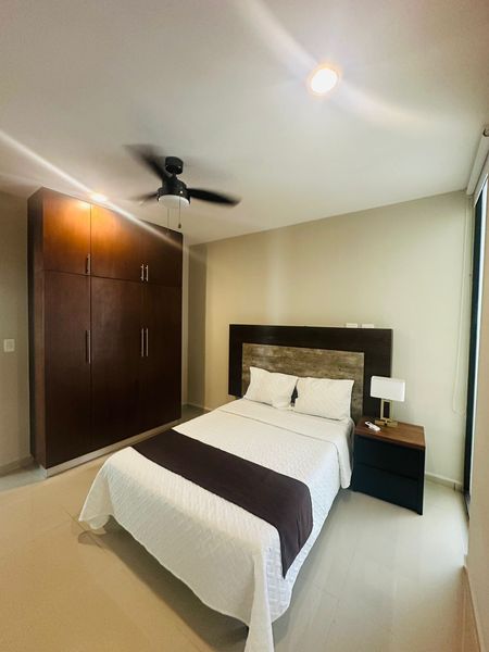 -2 recamaras con cama matrimonial cada una, closet vestido, ventilador y mini split