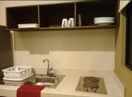 consta de 1 cama matrimonial, Pantalla TV, escritorio, cocineta, refrigerador, parrilla eléctrica, mesa, baño propio, closet vestido y mini Split, terraza;