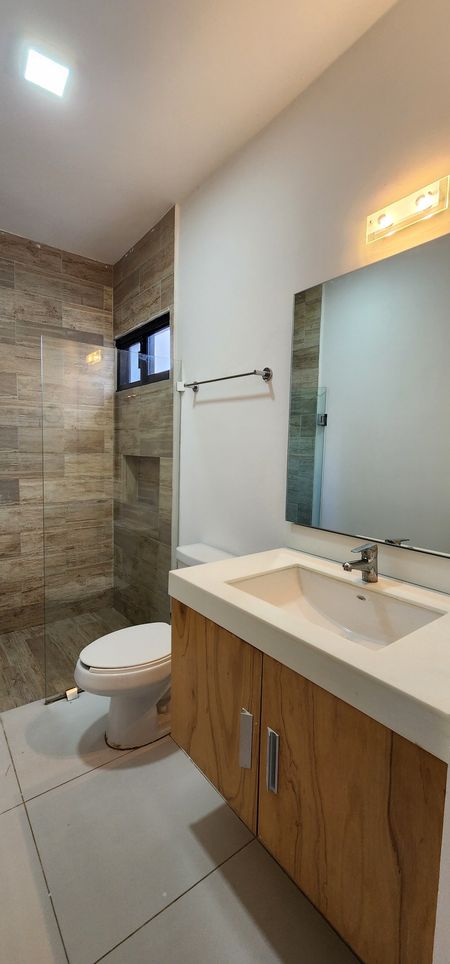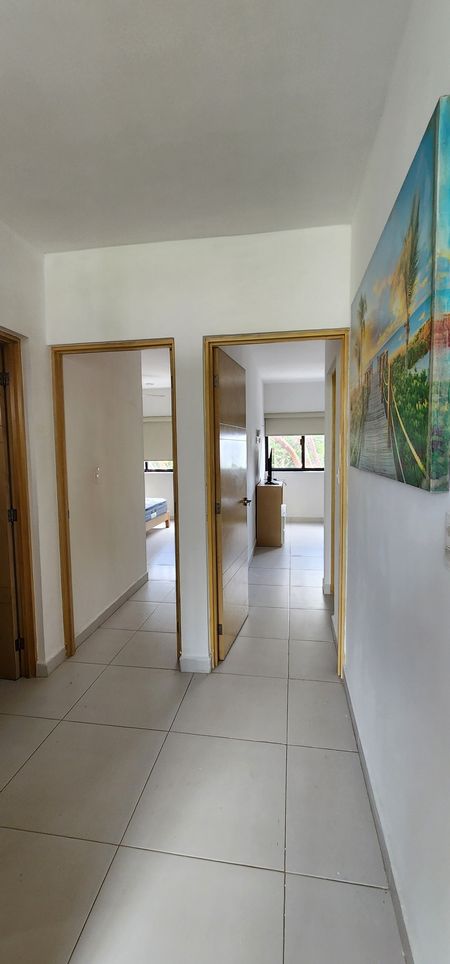 -2 recamaras con cama queen cada una, closet, mini split, ventilador, estante, pantalla TV Smart (la principal con baño propio)