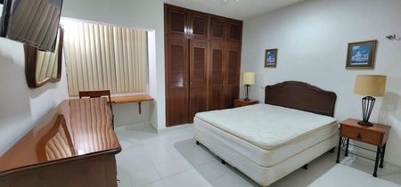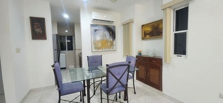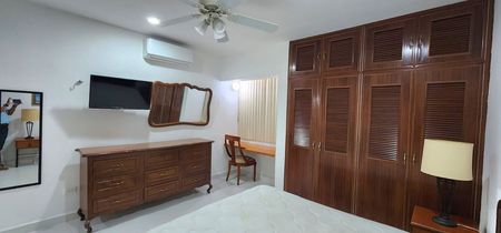 -Consta de 2 habitaciones con 1 Cama matrimonial con Tocador, closet vestido, ventiladores de techo, 2 baños, pequeña Sala-comedor corrido, cocina equipada con utensilios, zona de lavado con lavadora, 1 cajón de Estacionamiento con Portón eléctrico,